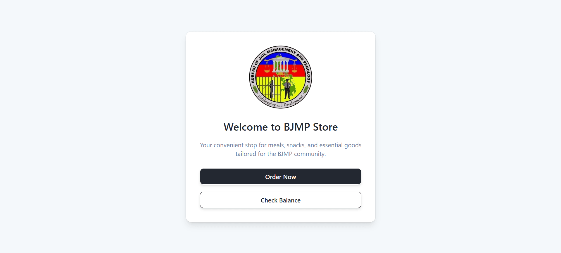 A self-service kiosk system designed within BJMP facilities. It enables the monitored purchase of products and streamlines for easier inventory and data management.